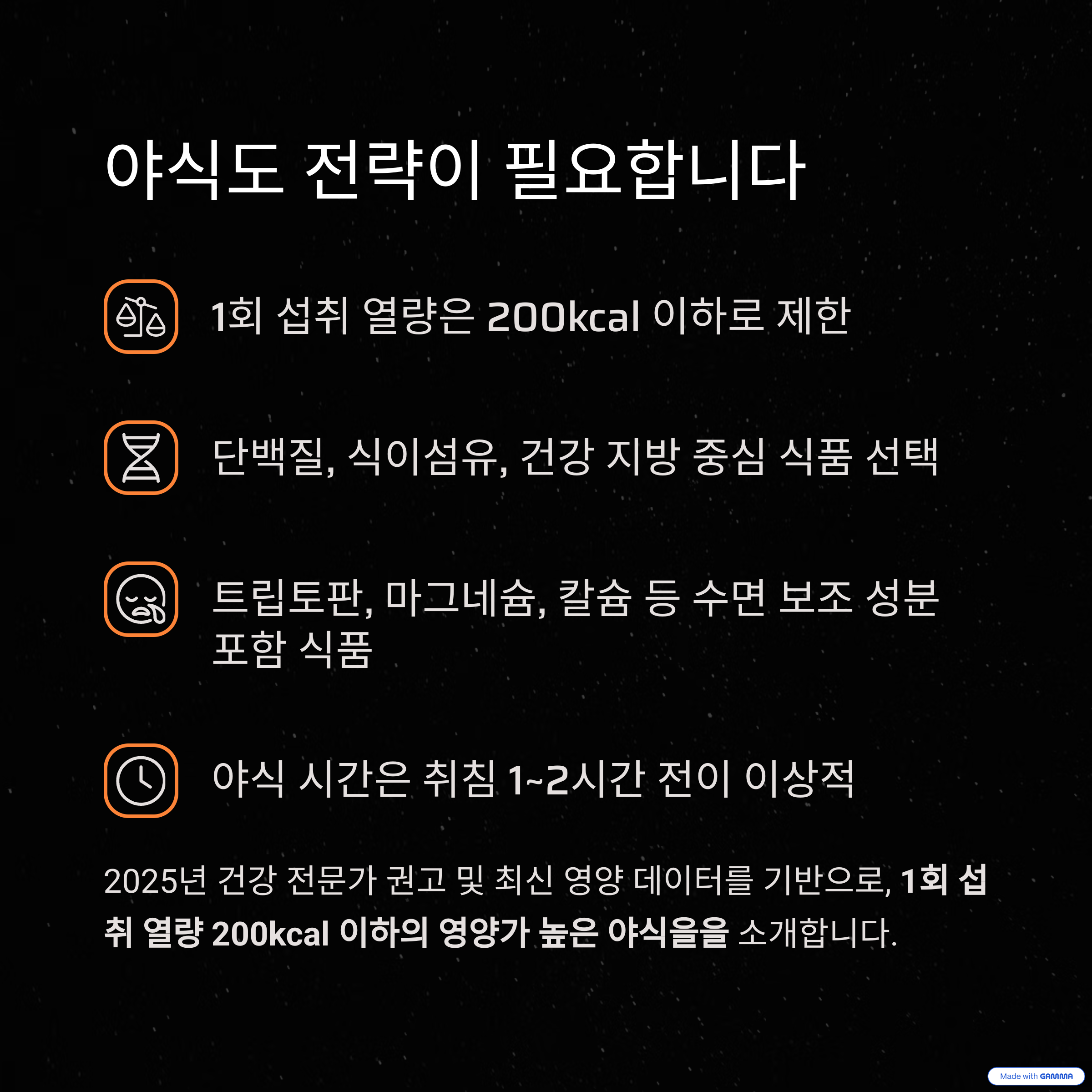 - 야식 시간은 취침 1~2시간 전이 이상적