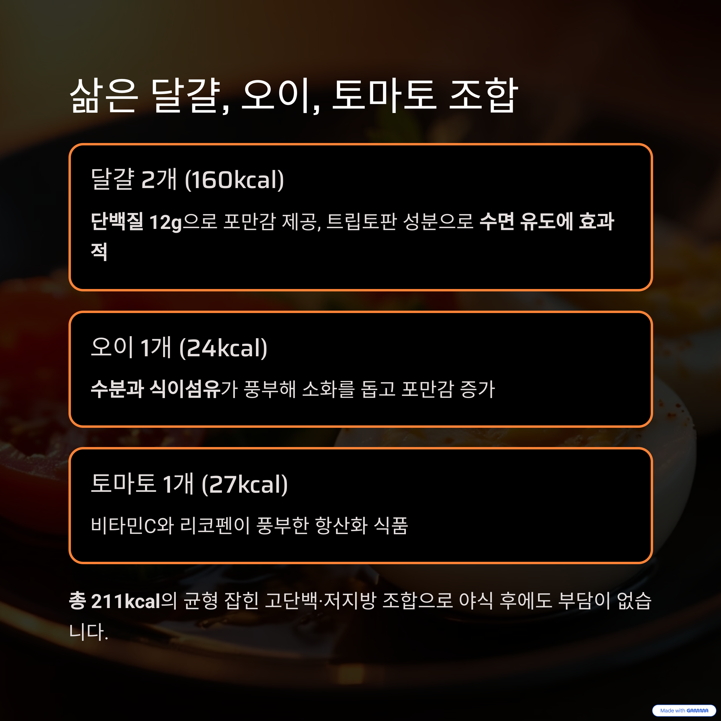 열량은 낮고, 포만감은 높으며, 수면까지 도와주는 야식이라면 충분히 긍정적인 역할을 할 수 있습니다.