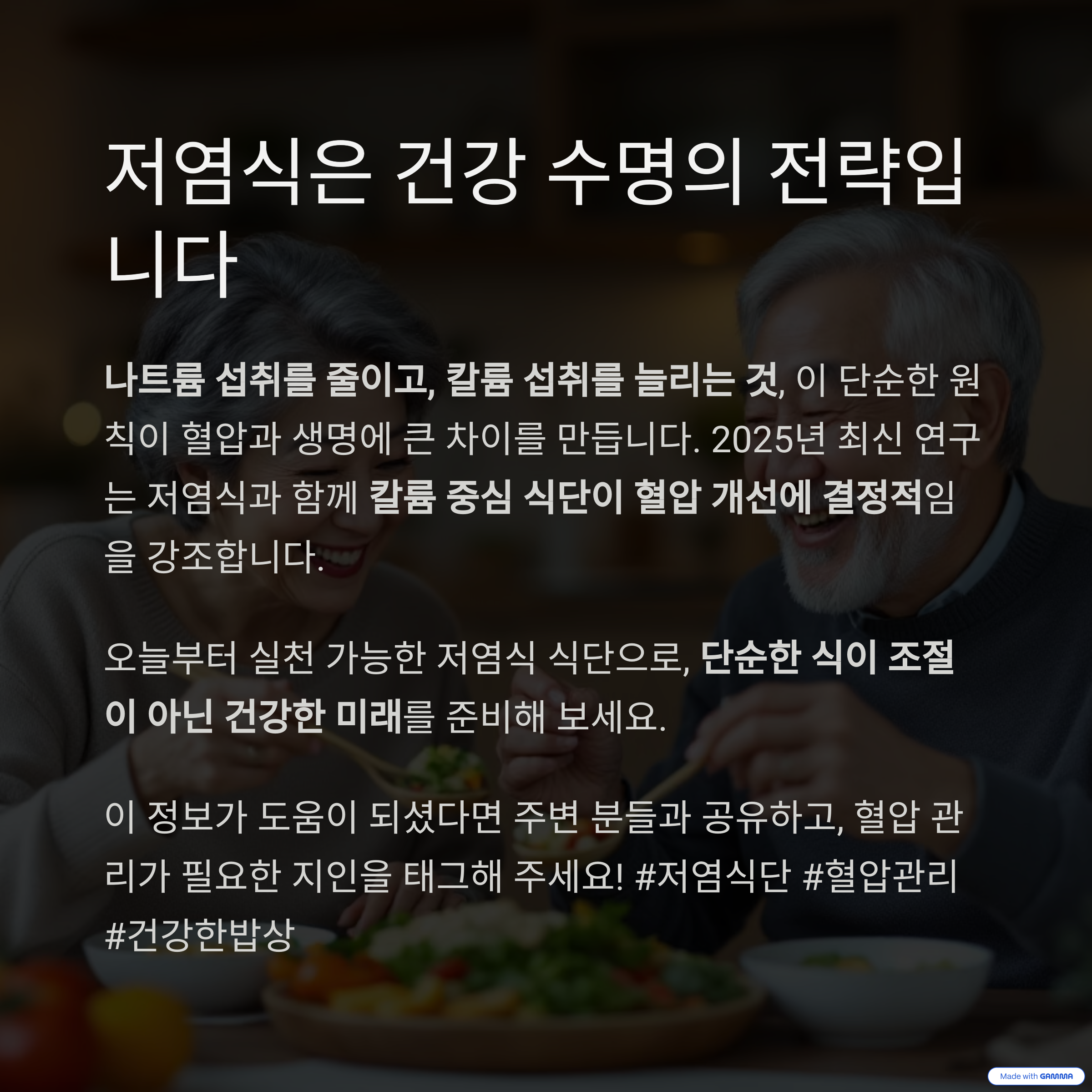 2025년 최신 연구는 저염식과 함께 칼륨 중심 식단이 혈압 개선에 결정적임을 강조합니다.