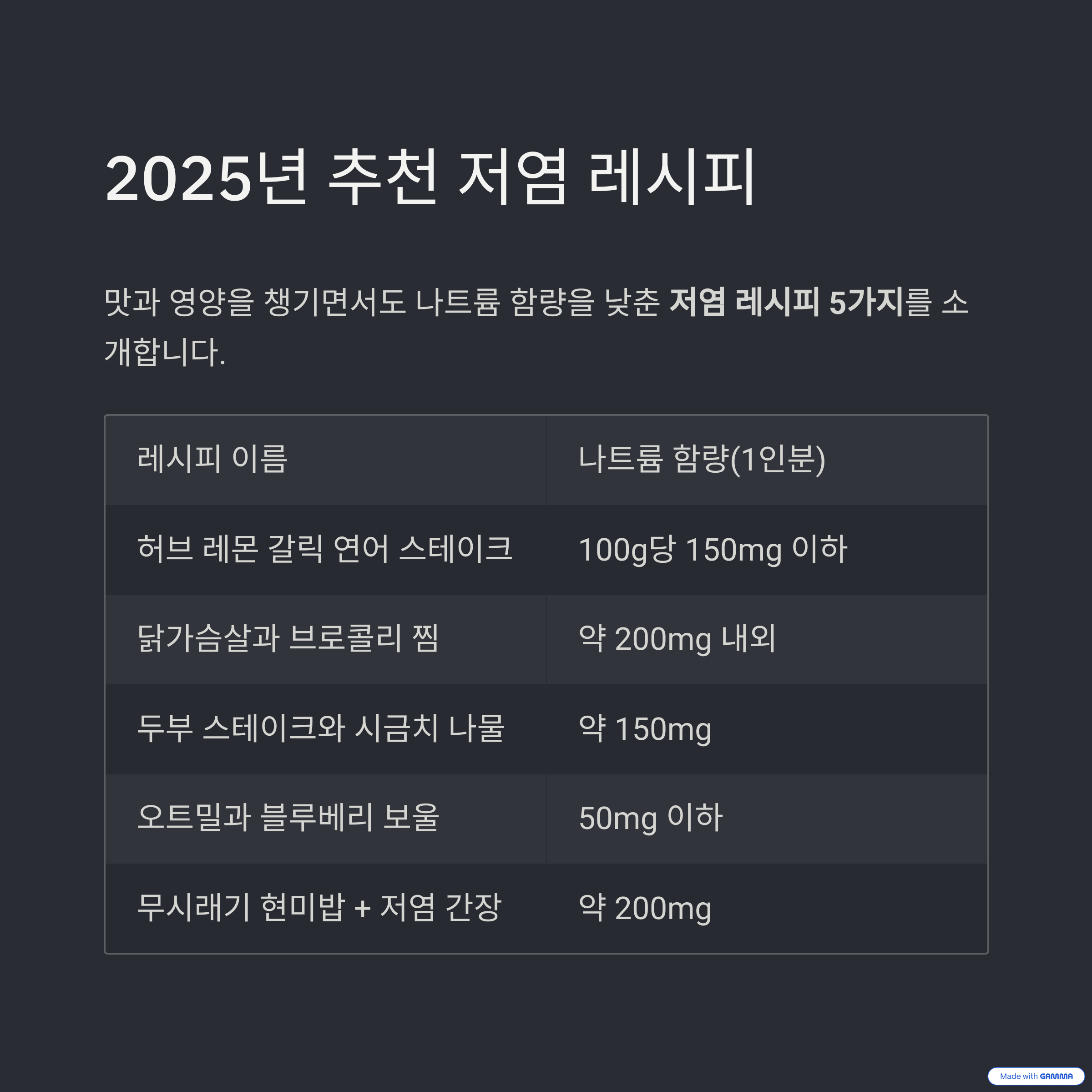 2025년 최신 데이터를 바탕으로 저염식 식단의 효과와 구체적인 레시피를