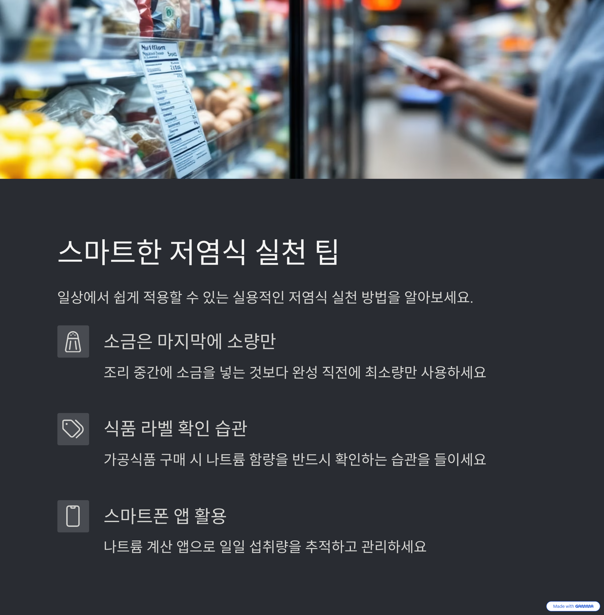 생활 습관 전반에서 나트륨 노출을 줄이는 전략이 필요합니다.