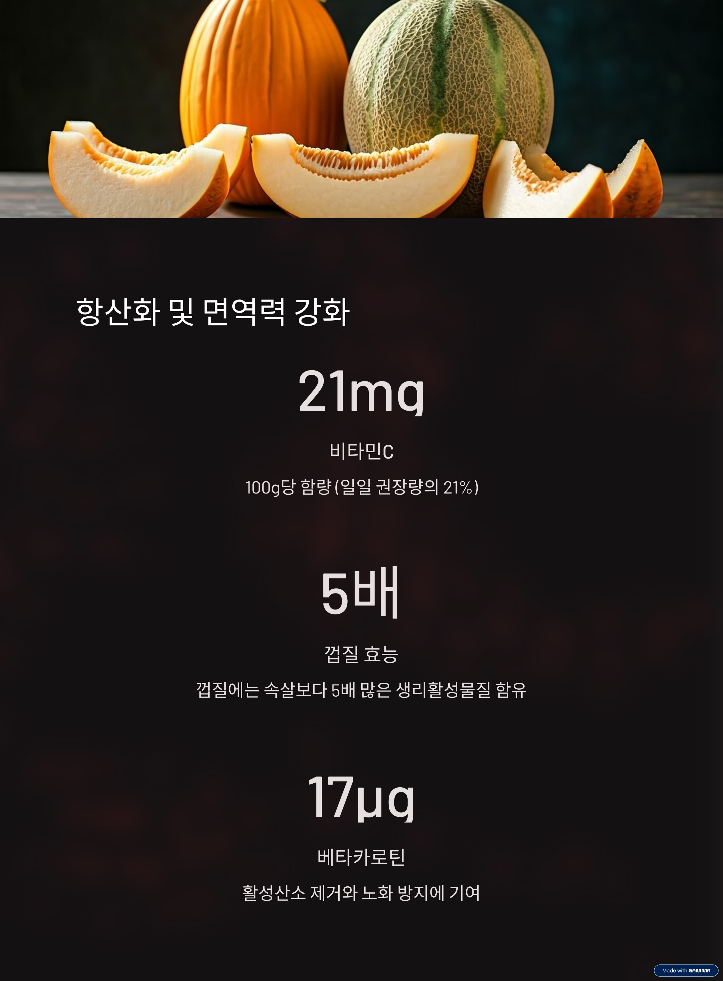 • 참외 껍질에는 속살보다 최대 5배 많은 생리활성물질(플라보노이드, 베타카로틴 등)이 있어 껍질째 섭취를 권장합니다.