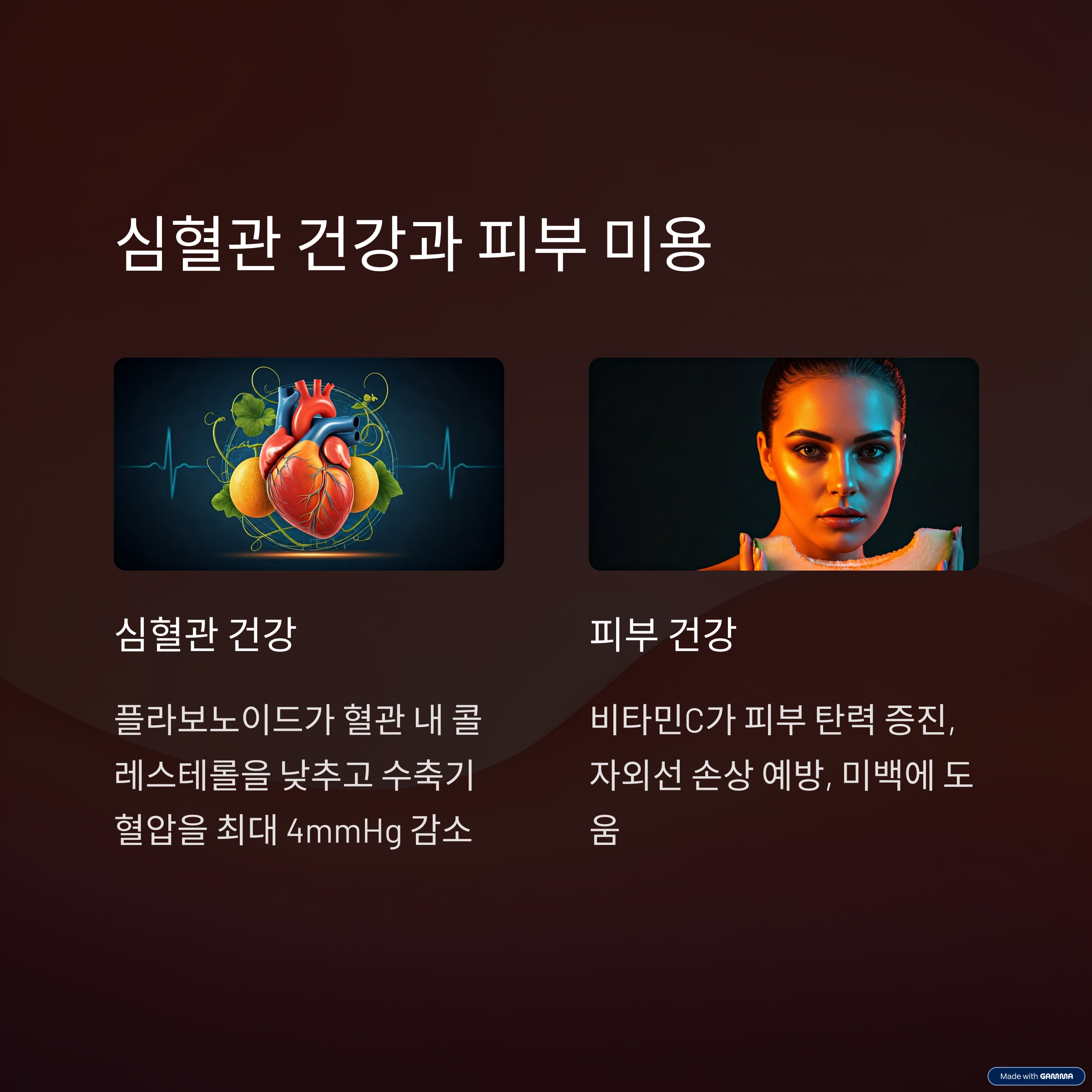 • 플라보노이드가 혈관 내 콜레스테롤을 낮추고, 수축기 혈압을 최대 4mmHg 낮추는 효과가 있다는 연구 결과가 있습니다.