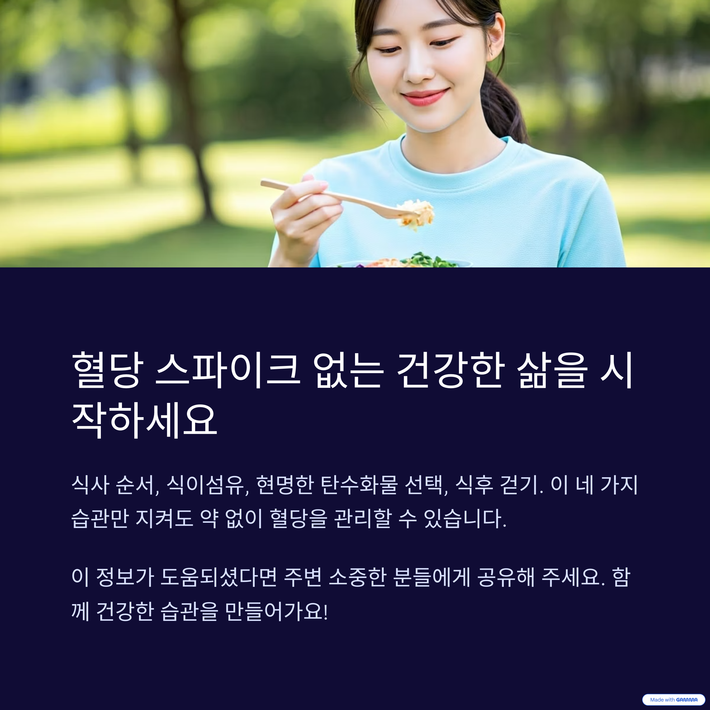 핵심은 식사 순서, 식이섬유, 탄수화물 선택, 식후 걷기입니다.