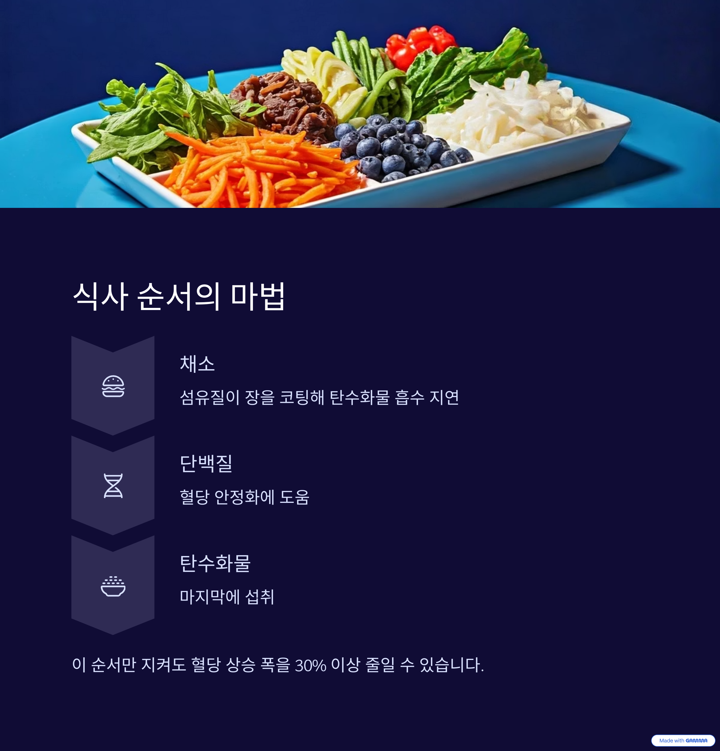 "같은 음식을 먹어도, 순서만 바꿔도 결과는 다르다."