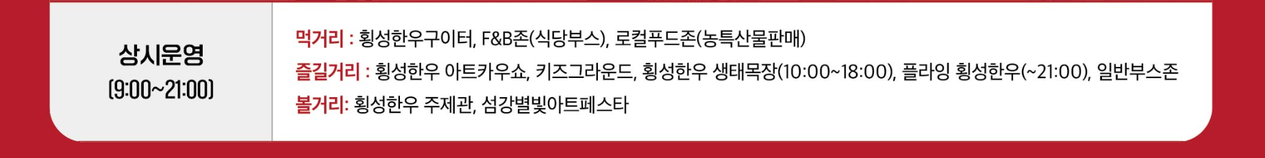 - 주최/주관 : 횡성군 / (재)횡성문화관광재단